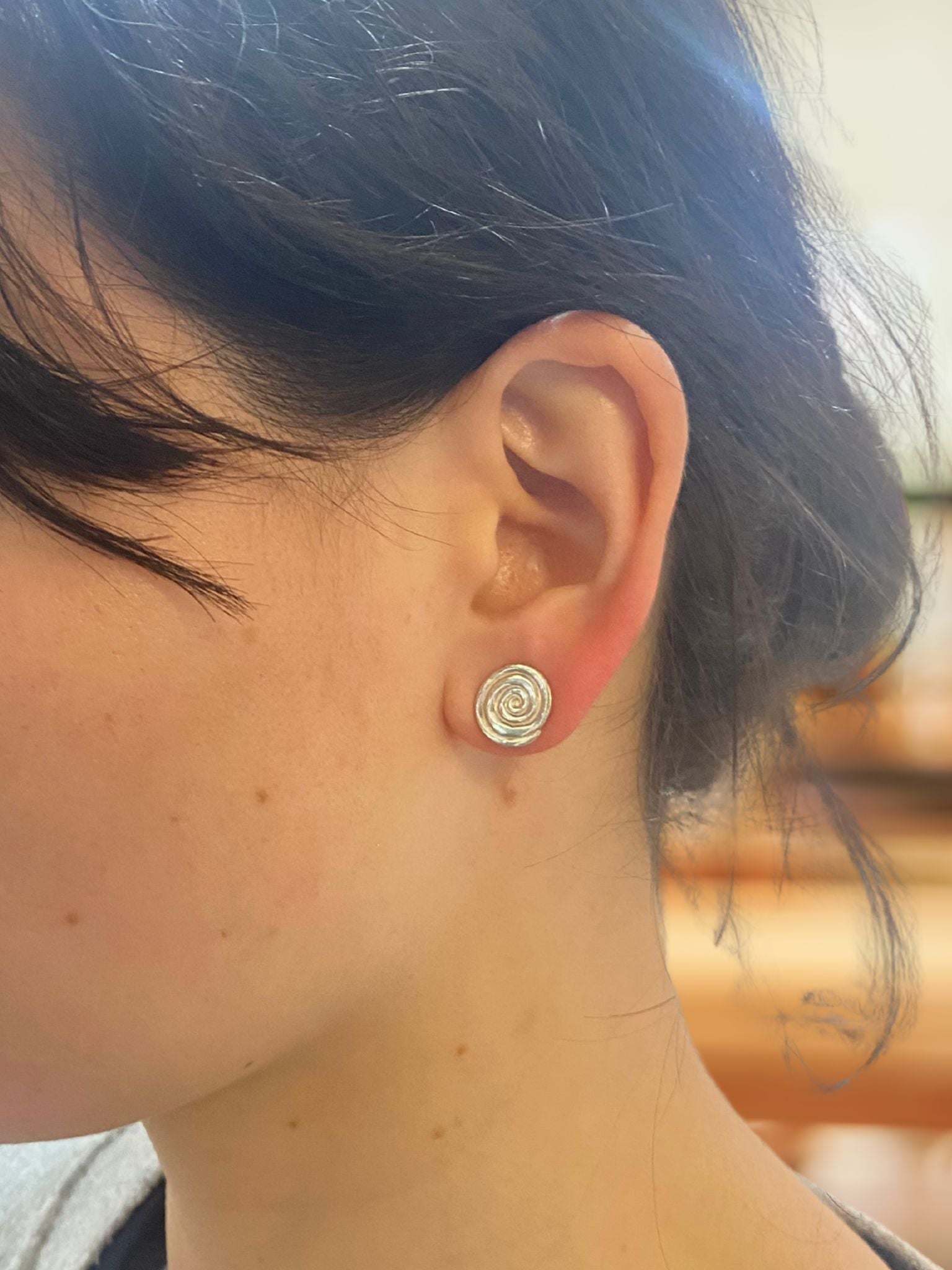 These beautiful spiral earrings handcrafted by John are strongly influence by the entrance stone of Newgrange and represent Life , Death and Rebirth .
