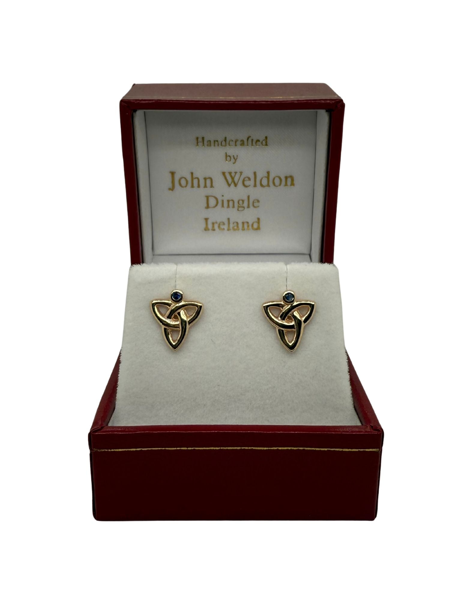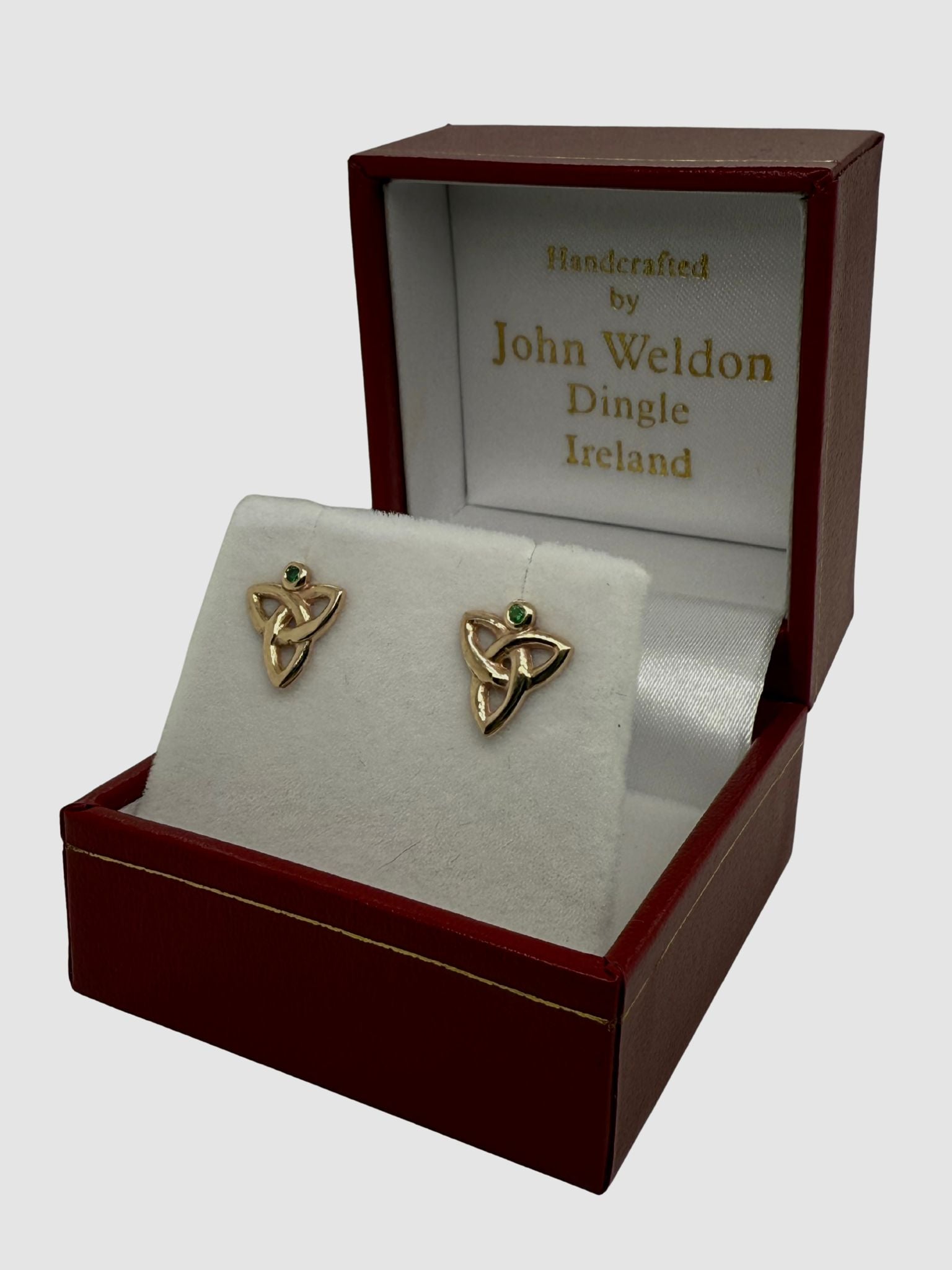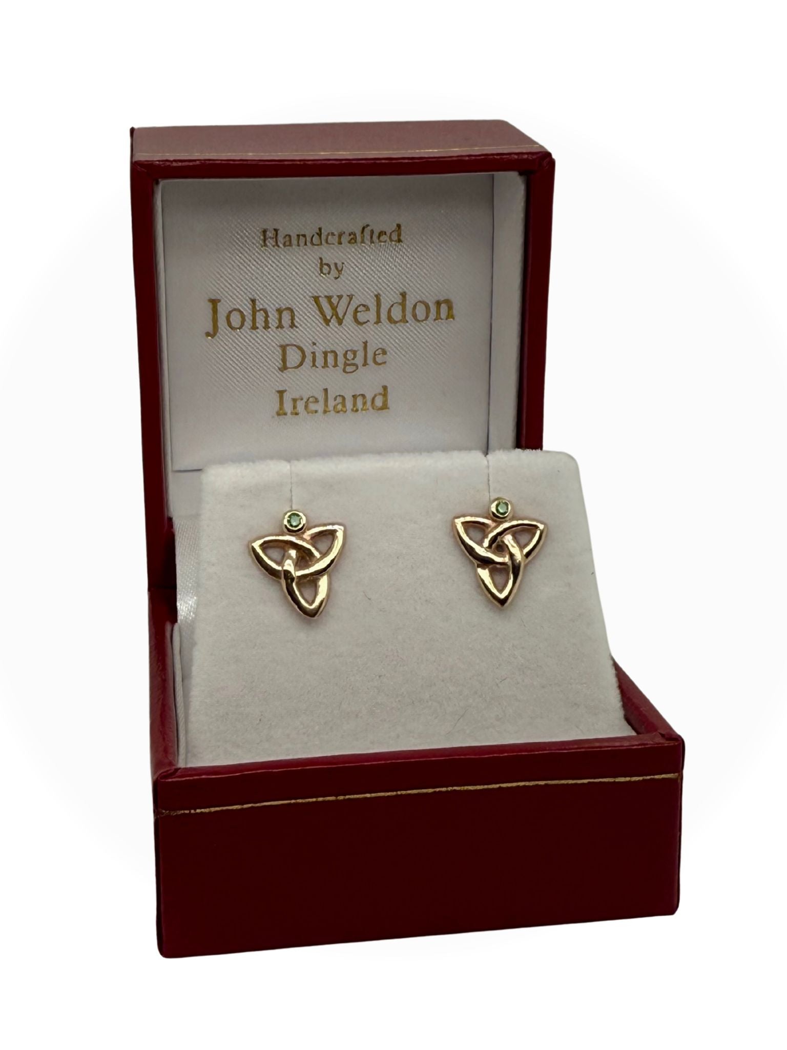 These beautiful Celtic knot earrings are handcrafted in traditional style by John Weldon using fine woven lines and symbolizing ETERNITY , as many of the ancient Celtic symbols, it has no beginning and no end. Other stone choice available on request.