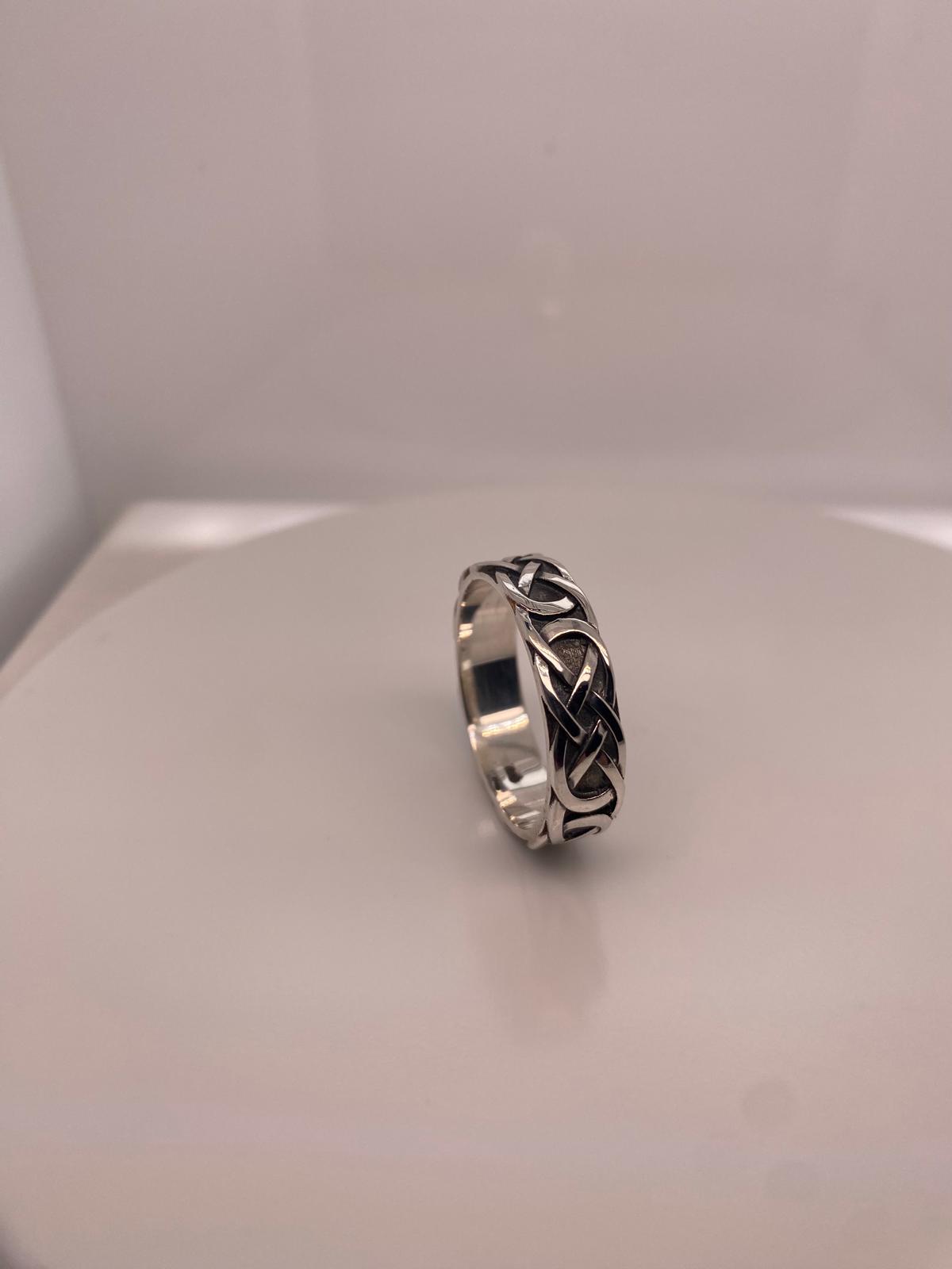 This beautiful Celtic knot ring is handcrafted in traditional style by John Weldon. Using fine woven lines and symbolizing ETERNITY, as many of the ancient Celtic symbols, it has no beginning and no end.