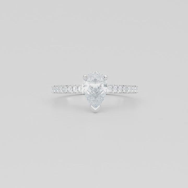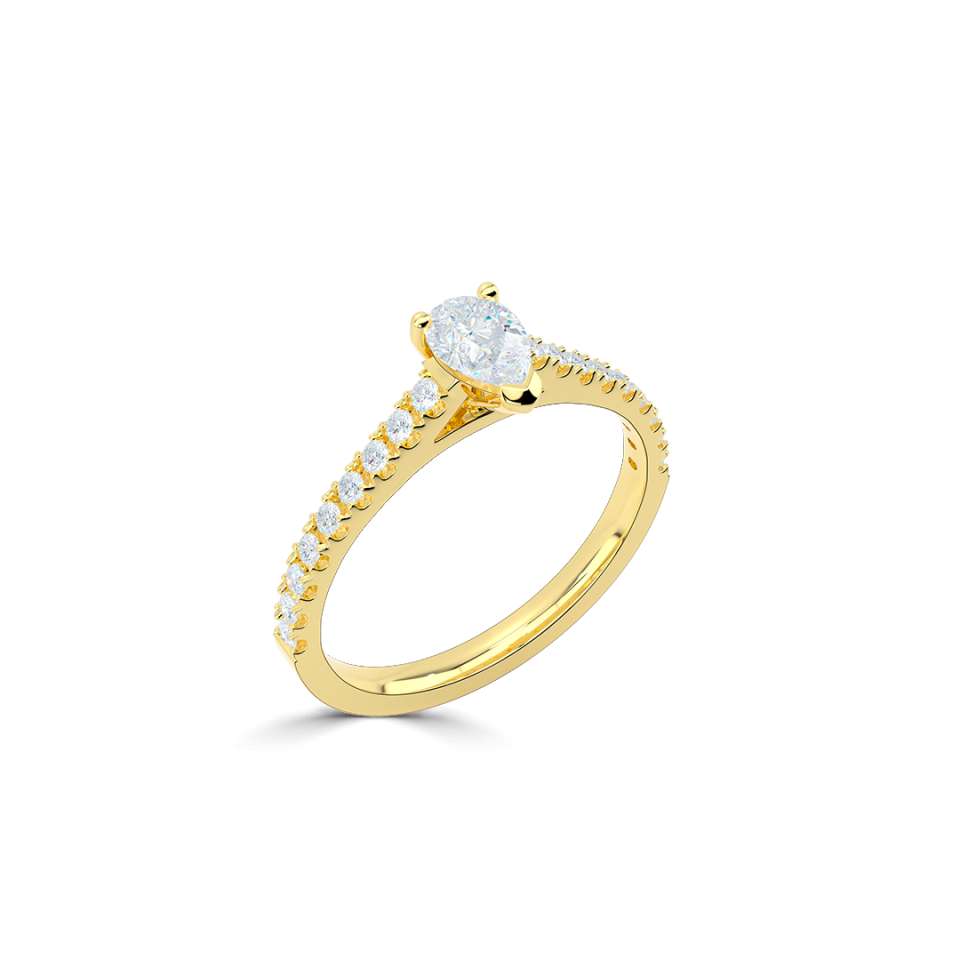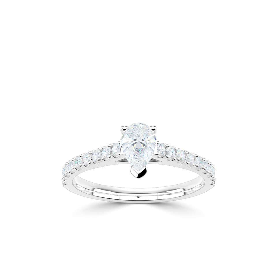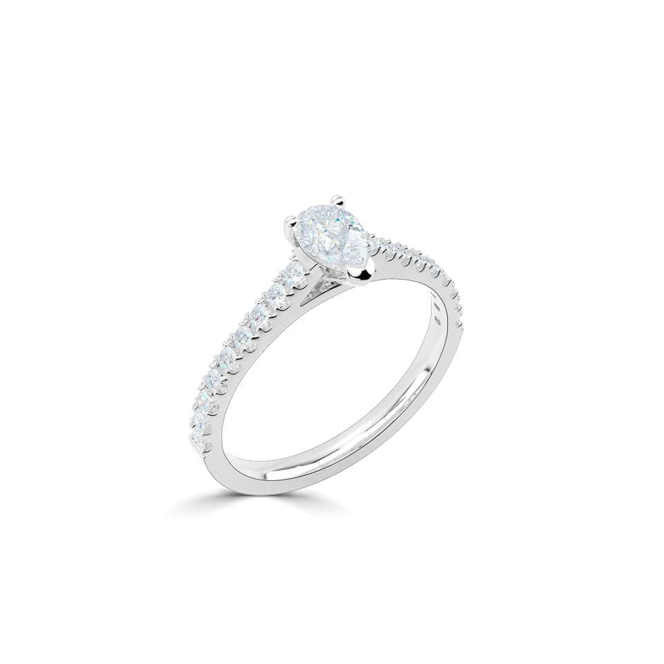 A classic pear solitaire with diamond set shoulders.
