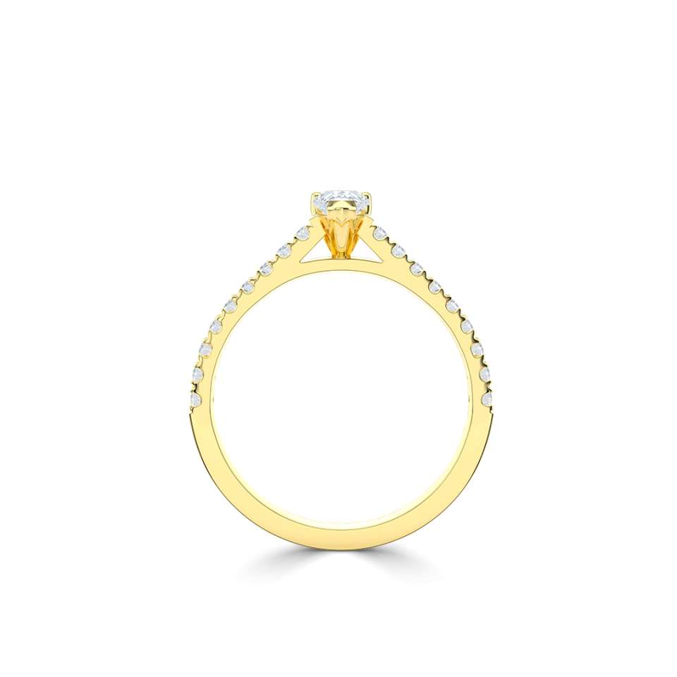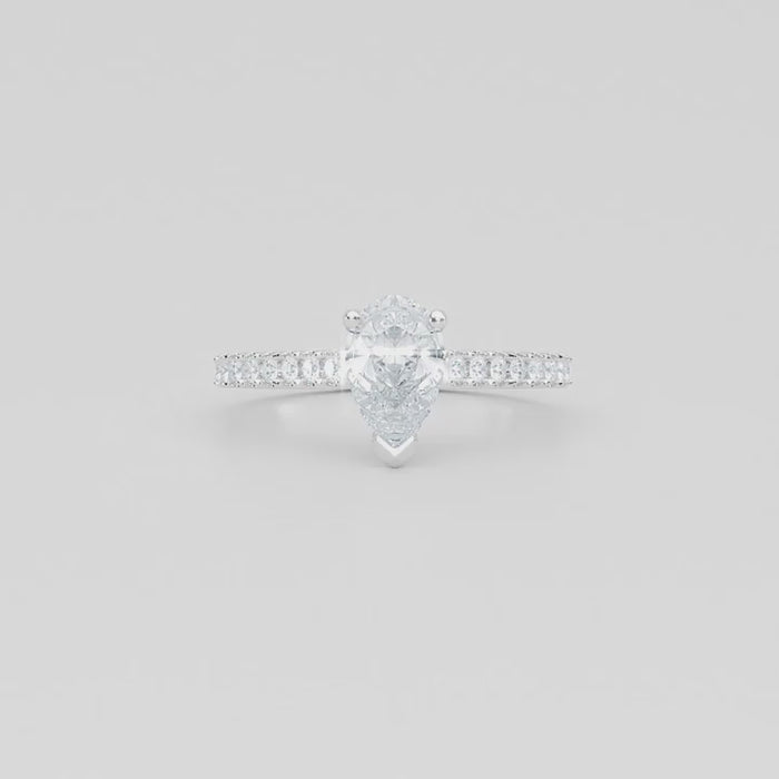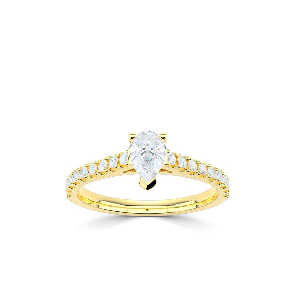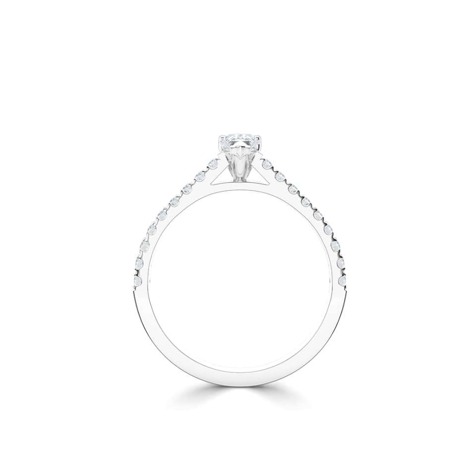 A classic pear solitaire with diamond set shoulders.